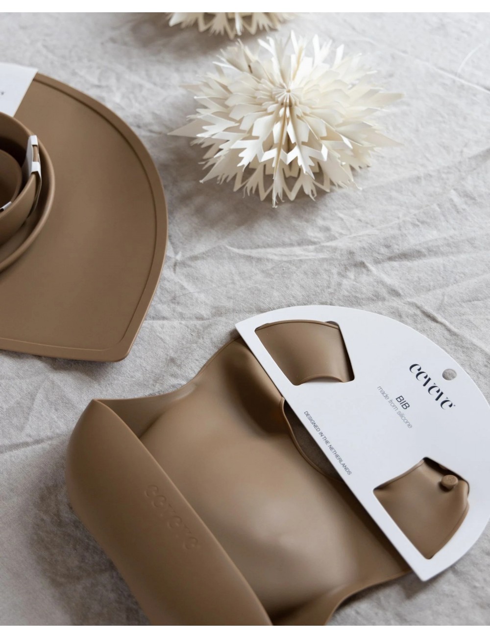 Bavoir en silicone Taupe.