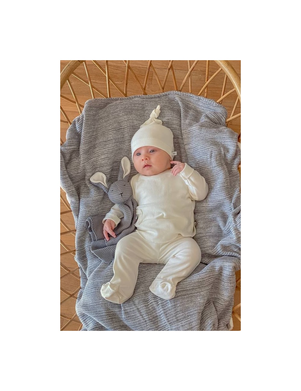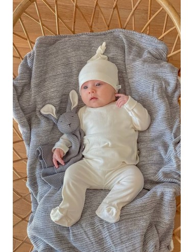 Le bonnet pour nouveau-né avec nœud de la ligne pure est un bonnet souple parfait pour les nouveau-nés. Idéal pour être transporté dans la valise d'accouchement à l'hôpital, il est fabriqué en fibre de bambou naturelle, un matériau doux et thermorégulateur qui maintient la tête du bébé à la bonne température dès la naissance.