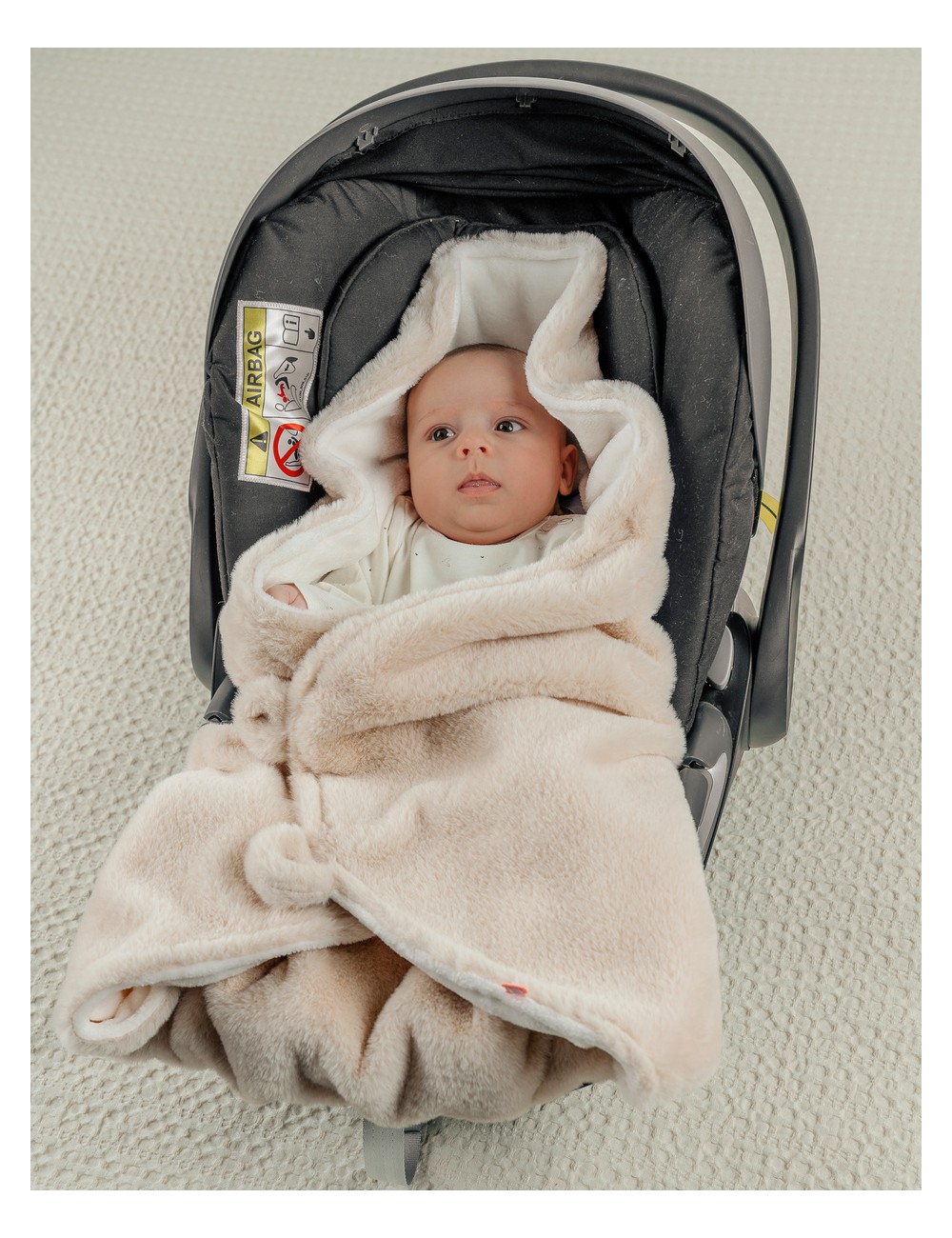 Compatible avec tous les sièges bébé, la couverture de transport et sécurité est indispensable dès la naissance.