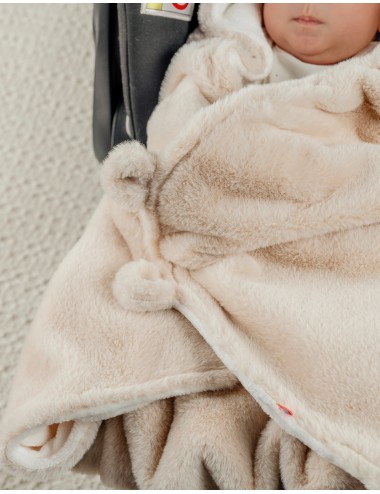 Confort Douillet : Cette couverture promenade offre une sensation de chaleur et de bien-être grâce à sa fausse fourrure sable à l'extérieur et à son intérieur en Groloudoux®, procurant à votre bébé un cocon de douceur pendant les jours frais.