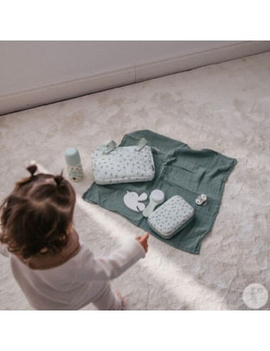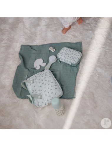 Cette trousse est faite d’un tissu côtelé doux avec un joli imprimé feuillage à l’intérieur. Idéale pour ranger les petits objets comme les produits de soin. Pratique, élégante, une belle addition à votre trousseau de naissance !