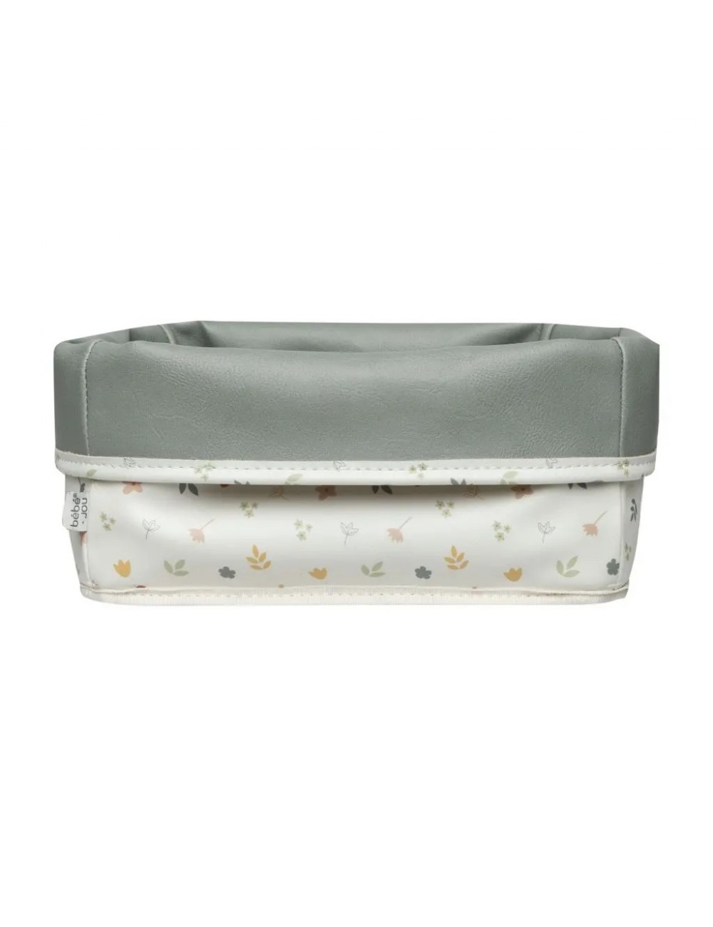 Panier organisateur de petite taille avec intérieur en tissu bio induit. Idéal pour ranger les produits cosmétiques et d'hygiène du bébé que vous souhaitez avoir à portée de main sur la table à langer.
