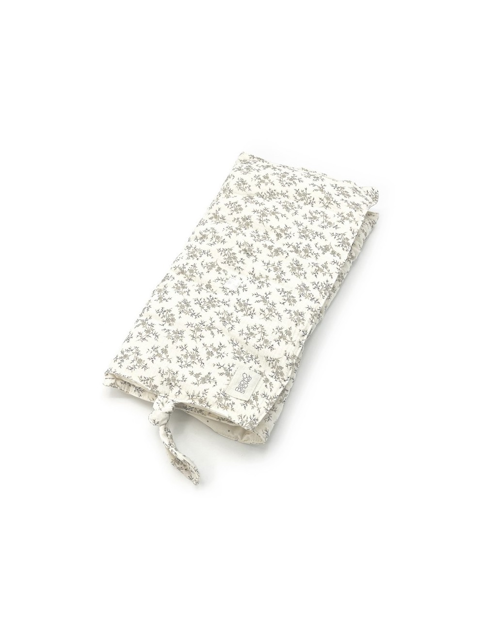 Tapis à langer nomade qui se garde enroulé dans le sac à langer. Intérieur en coton Bio induit. Fermeture avec lacet.