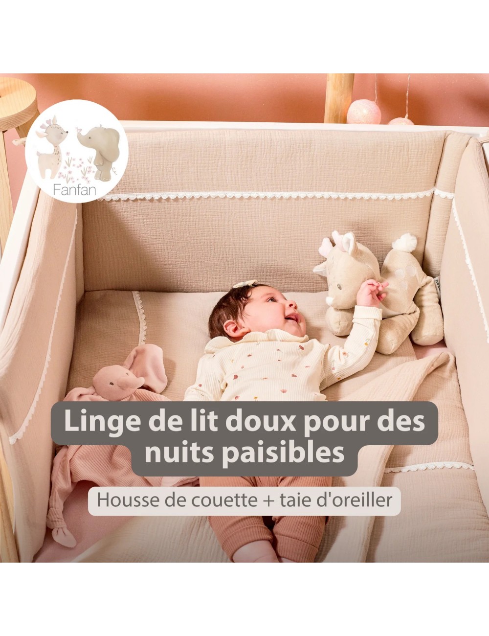 La collection Fanfan de Nattou apporte une touche de magie dans l’univers de bébé, avec d’adorables éléphanteaux et faons comme compagnons tout doux. Des doudous aux accessoires : tout est conçu dans des matières moelleuses et des couleurs harmonieuses qui inspirent calme et tendresse. Fanfan associe des personnages attendrissants à un design élégant et intemporel, offrant ainsi une touche chaleureuse et ludique à chaque chambre de bébé.