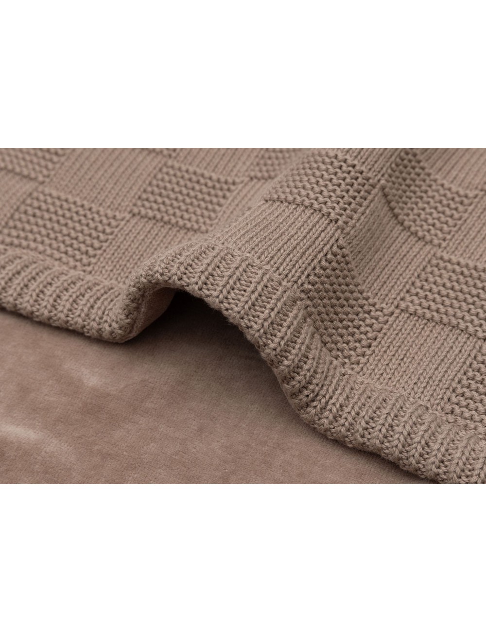 Cette couverture Milky Coffee avec finition velours est parfaite pour le lit de bébé. Son motif box knit lui donne un look solide et structuré, tandis que le tissu velours apporte douceur et confort. Idéale pour des nuits bien au chaud