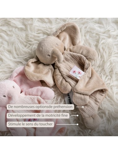 Ce ravissant doudou bébé de Nattou en forme de petit éléphant couleur sable deviendra, dès la naissance, le compagnon inséparable de votre enfant. Le coton tétra léger avec un revers en doux velours rend ce doudou irrésistible à câliner et facile à attraper. Grâce à son format compact, il s’adapte parfaitement aux petites mains et peut être emporté partout. Le petit éléphant apporte réconfort quand c’est nécessaire et apaise votre bébé lors des siestes, en déplacement ou au moment du coucher. Un doudou plein de tendresse qui procure chaleur et sécurité, tout en étant un cadeau de naissance idéal pour toutes les occasions.