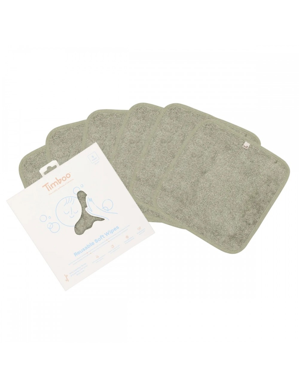Timboo - REUSABLE SOFT WIPES 20x20cm (6 pieces) - WHISPER GREEN