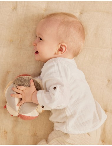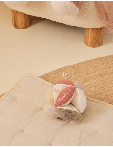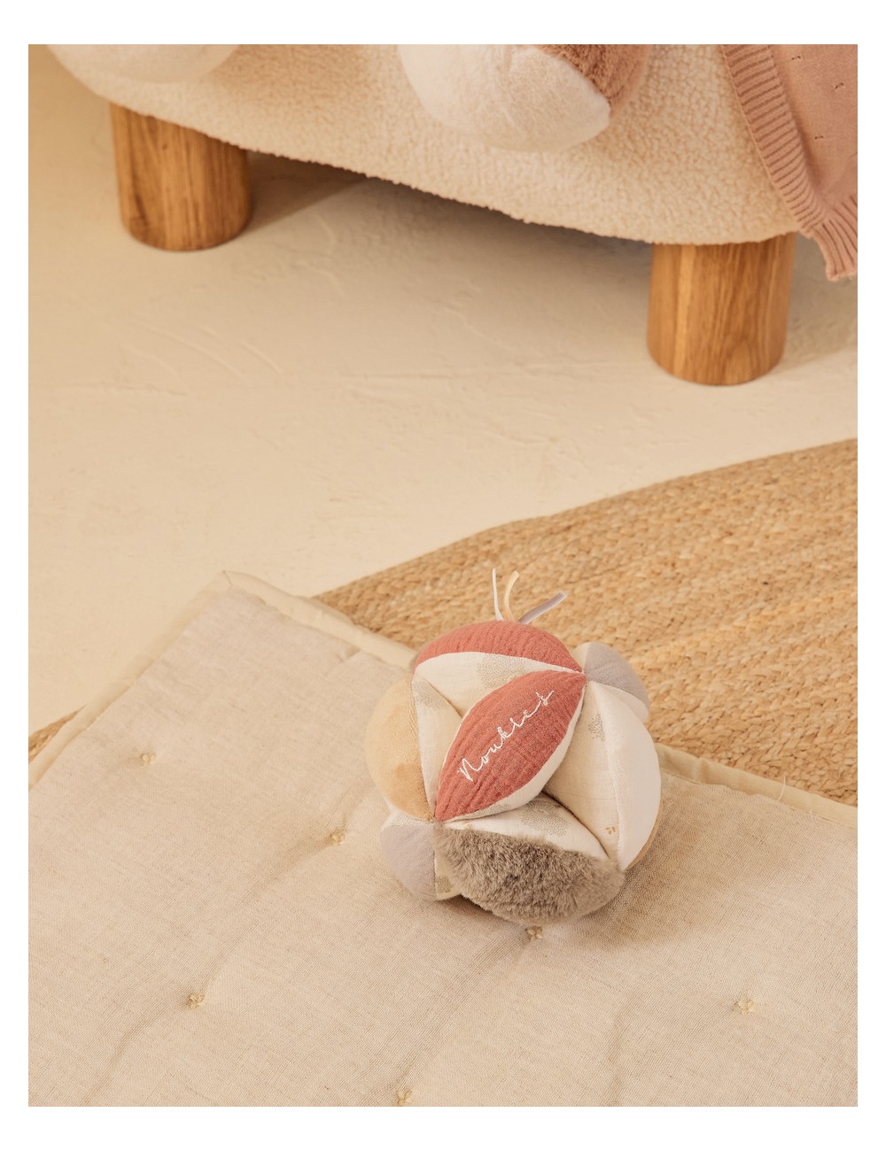 Dotée de 12 coussinets faciles à attraper et d’un mélange de matières douces, elle invite bébé à manipuler, saisir, tourner… tout en développant sa motricité fine et sa coordination main-œil. Un petit hochet et une clochette discrète à l’intérieur apportent une dimension sonore douce qui éveille l’ouïe à chaque mouvement.