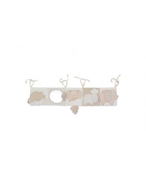 Ce support pour parc d'activités est une adorable guirlande de 5 pièces remplie d'animaux. Le livret présente des animaux joyeux comme un chien, un chat et un lapin qui amuseront votre tout-petit pendant des heures. Il émet des sons, des froissements et des ficelles pour stimuler ses sens. Parfait pour le parc !