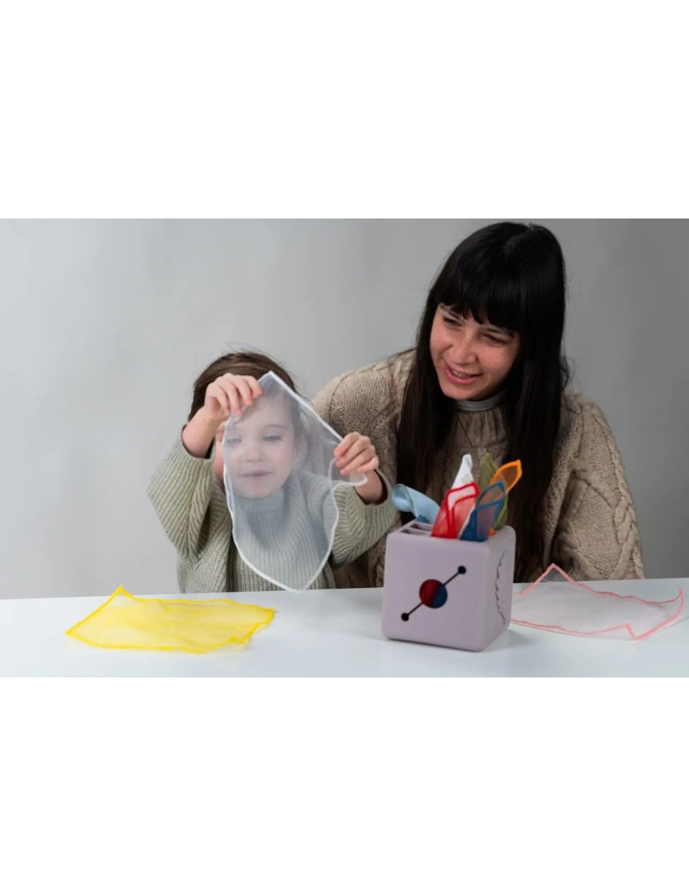 Découvrez la version pop-up en silicone de la boîte à mouchoirs bien-aimée de Taf Toys] Ce jouet de développement sensoriel comporte six faces attrayantes, dont une tête de lapin pop-up, un hérisson à toucher, une fleur en 3D pour encore plus de plaisir tactile et des ouvertures spéciales pour que les petites mains puissent sortir les mouchoirs. Cette boîte à mouchoirs contient 2 tissus illustrés et 8 mouchoirs en organza et favorise la motricité fine et le développement sensoriel. Différentes façons de jouer: tirer le lapin pop-up, toucher le hérisson ou la fleur, tirer les mouchoirs, tirer les mouchoirs à travers la grille et ainsi apprendre à reconnaître les couleurs et ensuite rassembler les mouchoirs dans la boîte à mouchoirs. Des heures de jeu garanties]