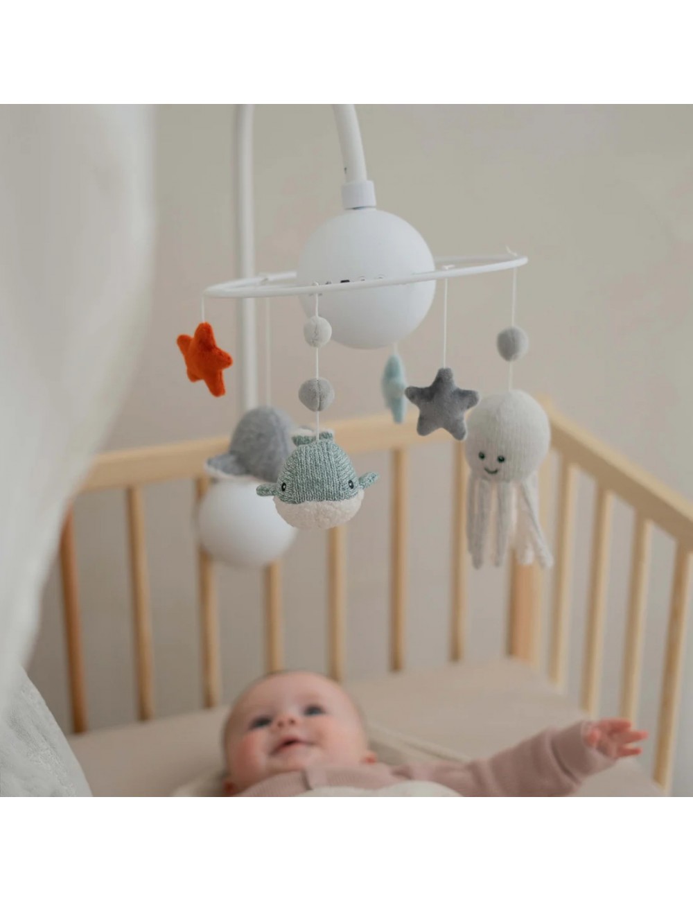 Le Mobile bébé musical rechargeable, avec 4 mélodies différentes. les personnages visibles dans ce mobile sont Olly (la pieuvre) et Moby (la baleine). Grâce à la télécommande réglez le mélodie qui vous enchante. C’est un objet idéal pour un Parc, un lit etc..