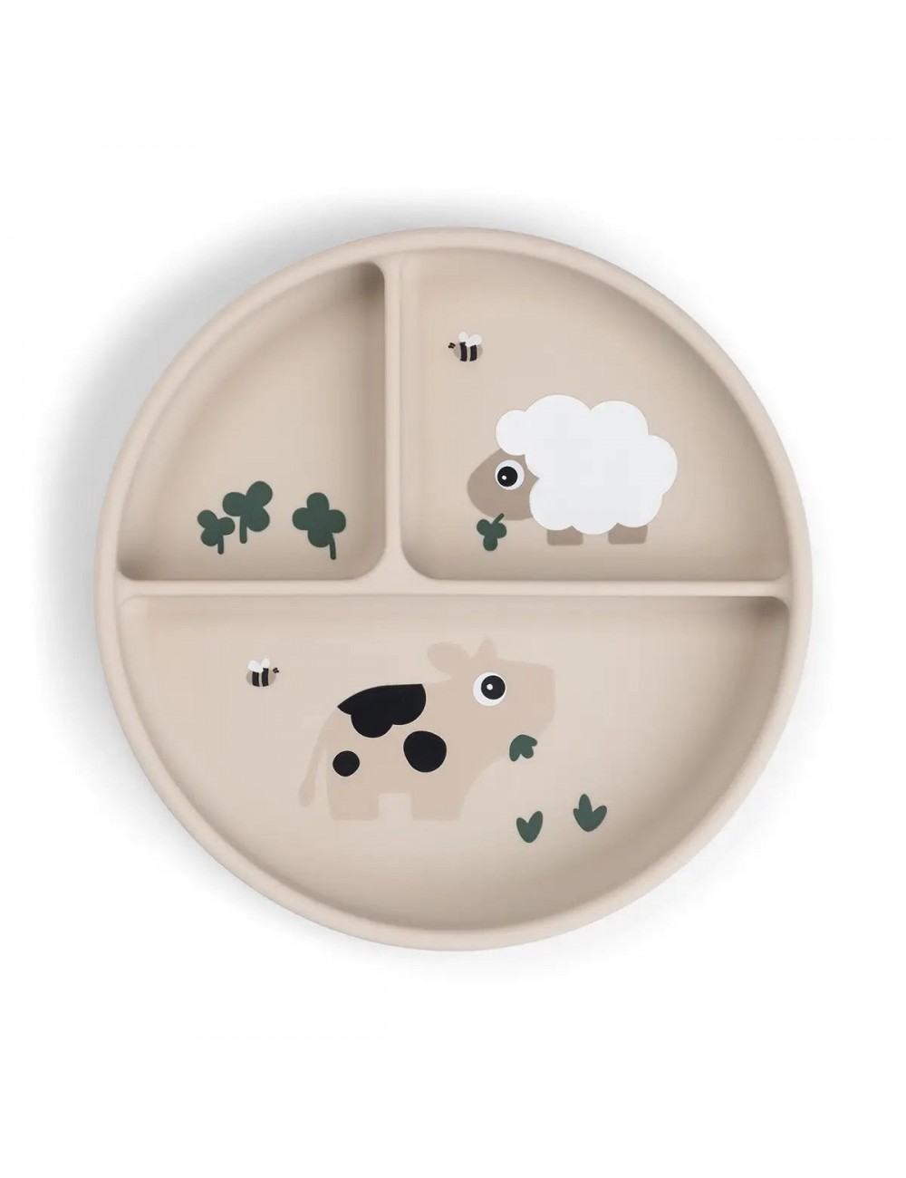 • Assiette de couleur sable aux formes et motif rigolos de Sheepy et Dotti