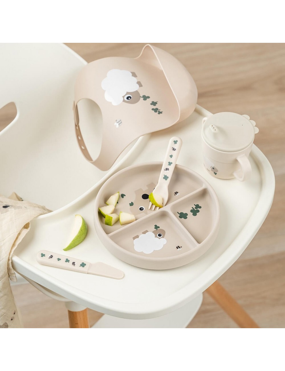 Une ventouse ingénieuse empêche l'enfant de faire basculer, de pousser ou de lancer l'assiette compartimentée