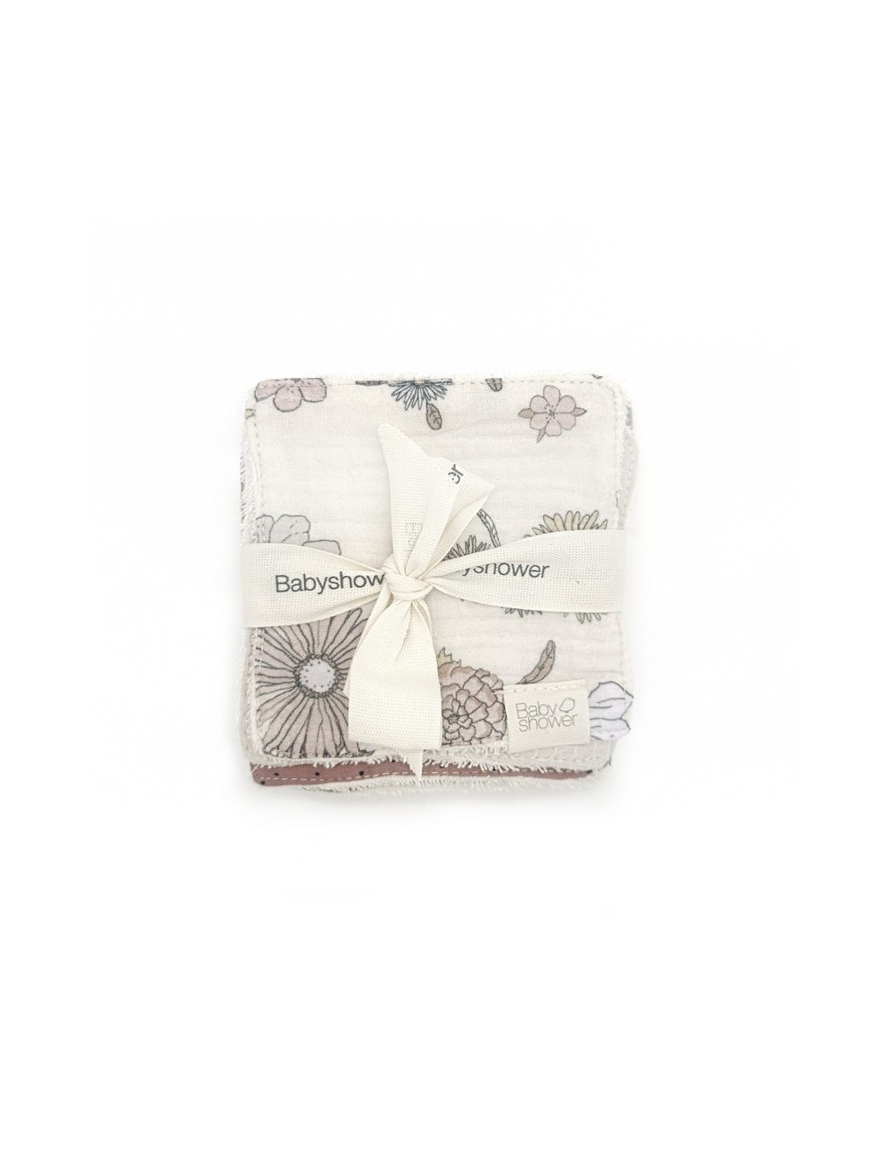 Ce lot comprend 4 langes de taille moyenne (70 x 70 cm), confectionnés en coton biologique 100 % et déclinés dans de jolis tons poudrés unis.