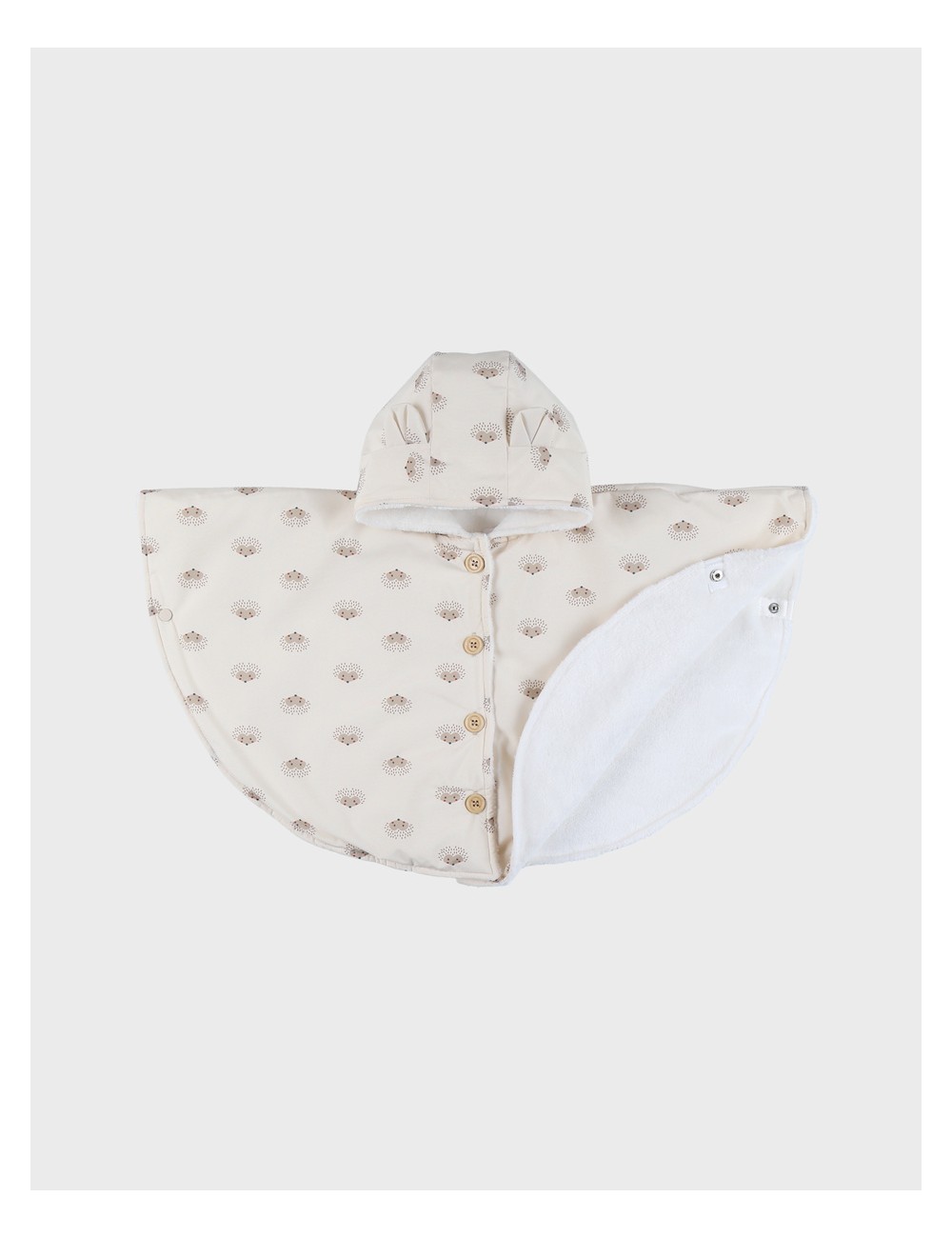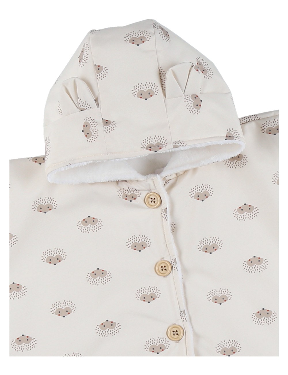 Plongez votre petit trésor dans un nuage de tendresse avec ce poncho imperméable beige clair, orné de jolis motifs d’hérissons de la collection Mix & Match. Son extérieur déperlant protège bébé des petites averses, tandis que son intérieur en sherpa ultra-doux l’enveloppe de chaleur et de confort. La capuche, ornée de charmantes oreilles de lapin, ajoute une touche espiègle et tendre à chaque promenade. Les boutons en bois sur le devant lui confèrent une allure naturelle et élégante, et les pressions latérales assurent un maintien parfait pour que bébé soit toujours bien emmitouflé et libre dans ses mouvements.