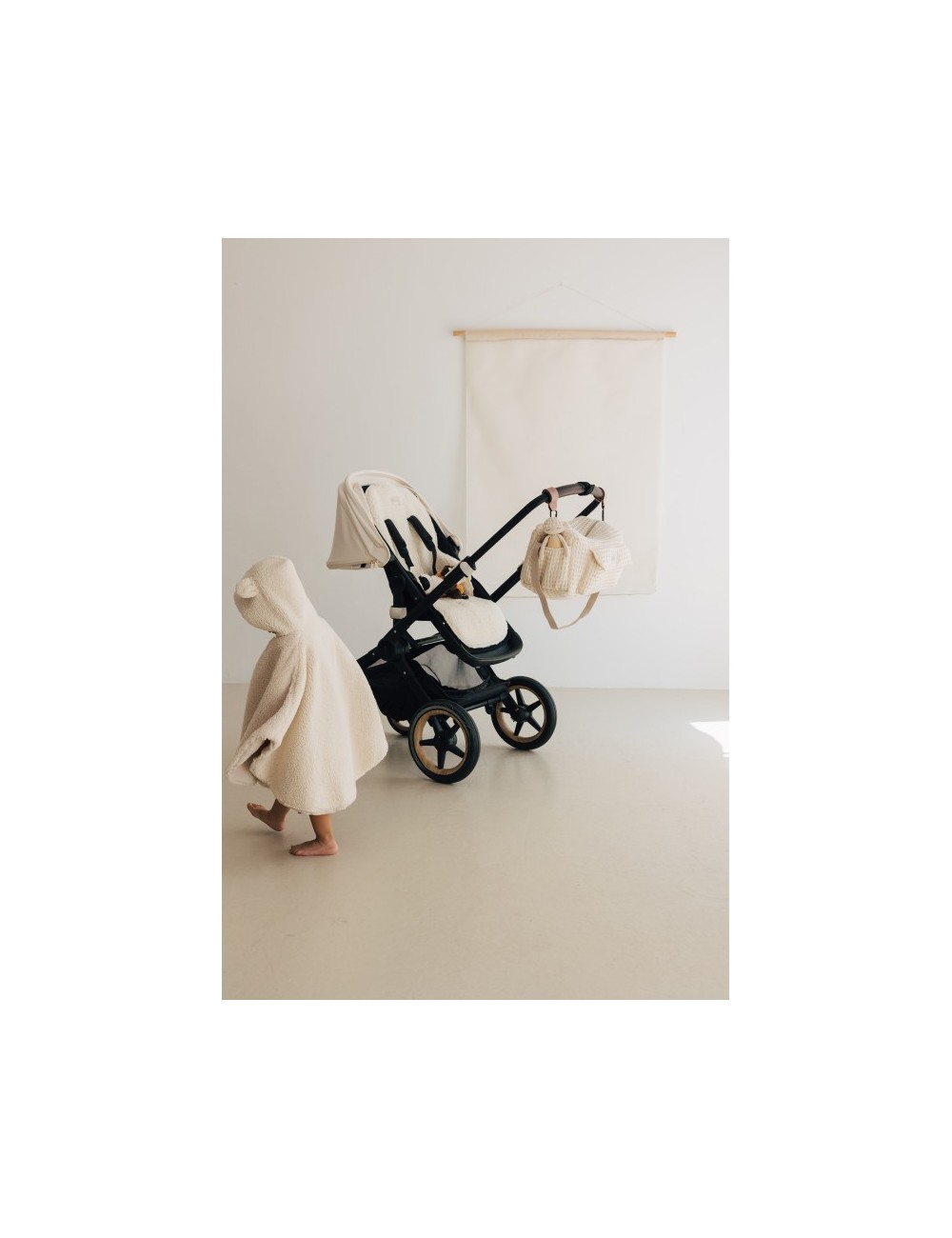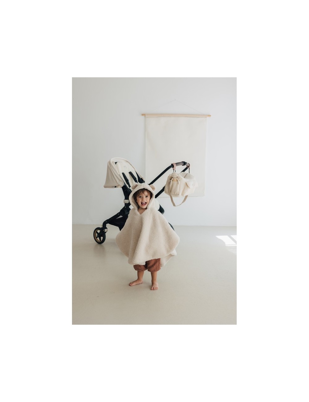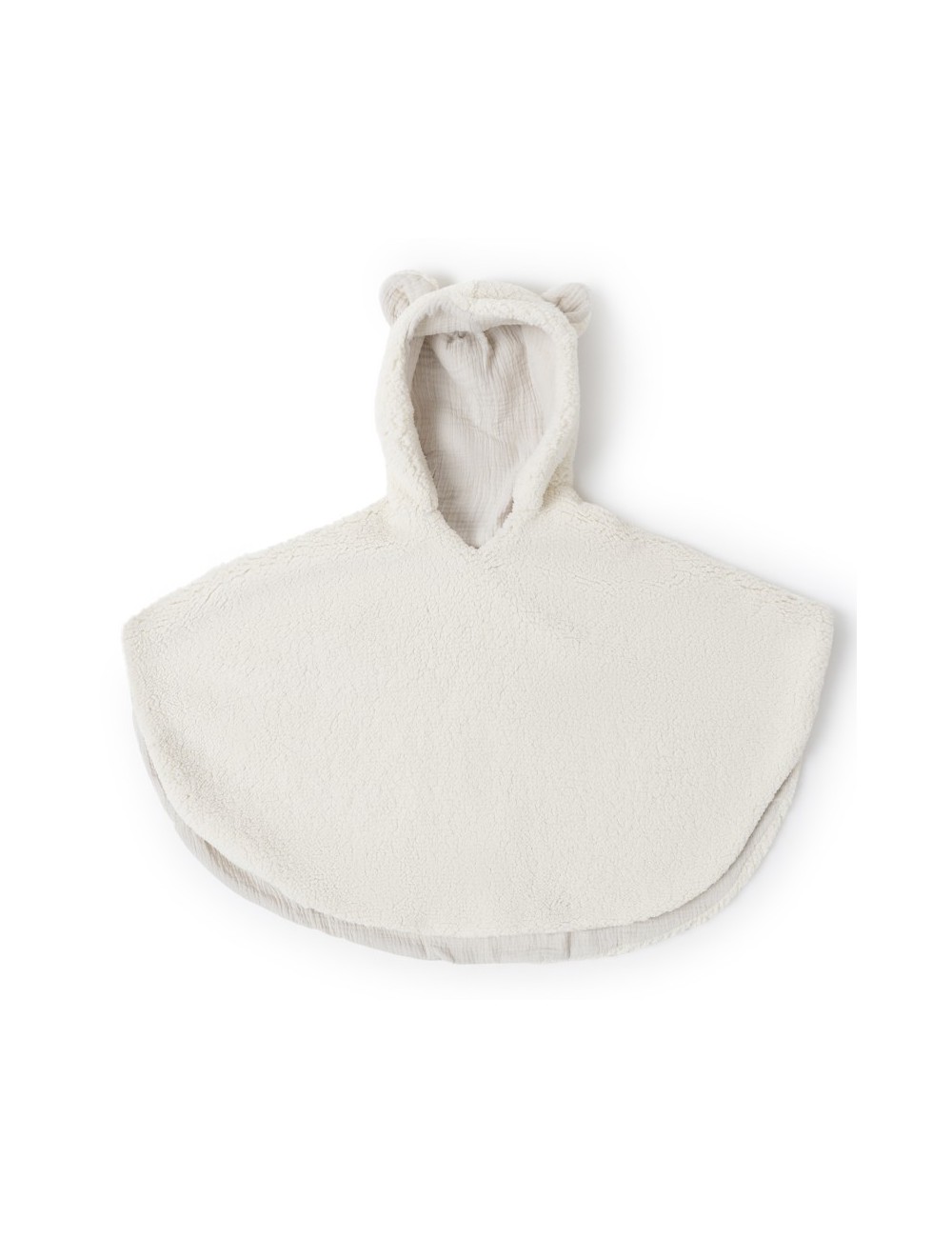 Poncho qui combine un côté en tissu polaire et un autre en gaze de coton. Conçu pour tenir chaud au bébé tout en assurant son confort, surtout lorsqu’il doit être attaché dans la voiture.